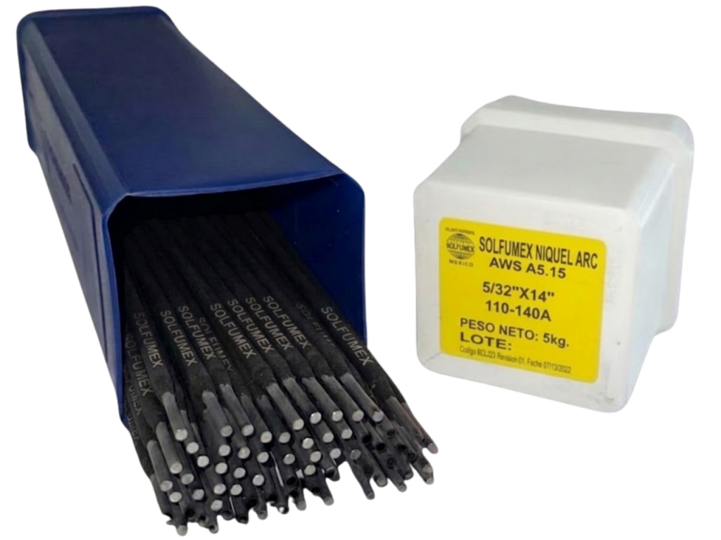 • SOLFUMEX NlQUEL ARC es un electrodo especialmente diseñado para soldar hierro nodular, maleable o gris y para la unión de estos con aceros, en estado de contaminación con suciedad y grasa, fatigado o envejecido donde se requiera una buena maquinabilidad. Es un electrodo de bajo amperaje para trabajar en cualquier posición, de gran resistencia mecánica y al desgaste por fricción. El metal depositado es una aleación Níquel-Hierro libre de porosidad y fisuras.